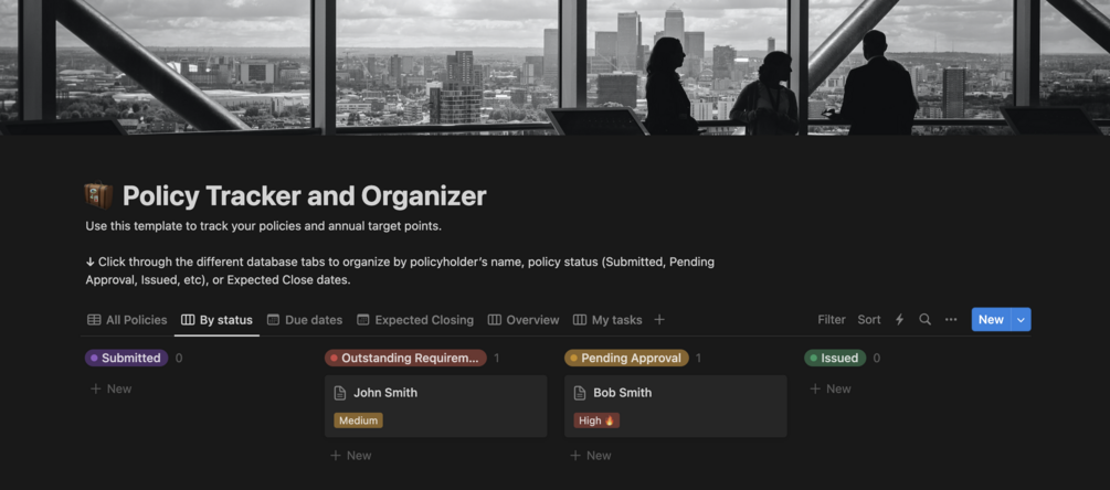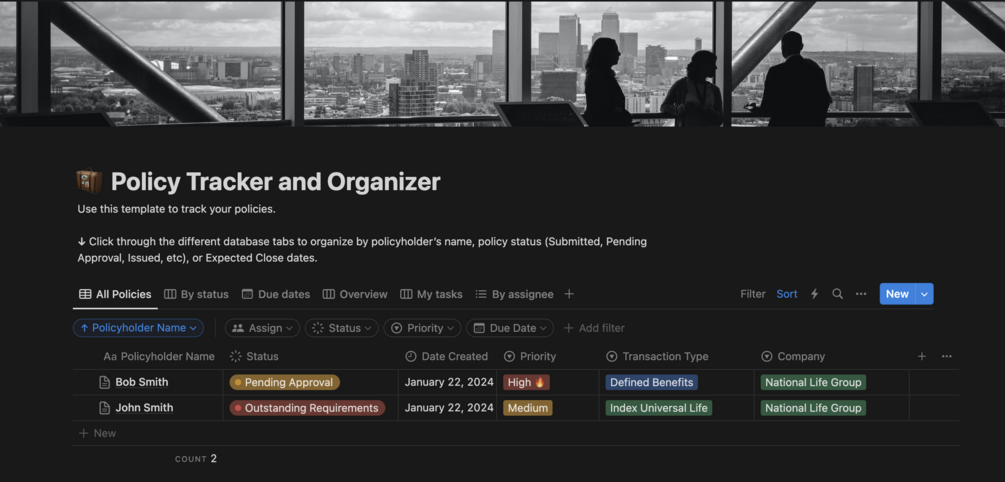 💼 Agent-centered Notion template for policy management, call logging and overall organization and file tracking